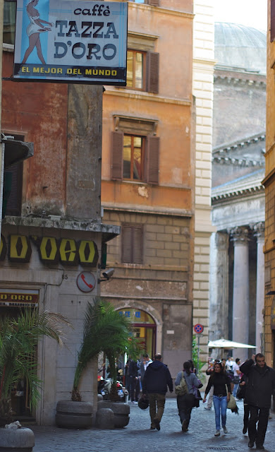 Man buvo įdomu stebėti, kaip pusryčiauja darbininkų klasės romiečiai vietinėje senamiesčio kavinukėje. Tik įėję jie patys pasiima jiems patikusią bandelę, kol jiems išverdą kavą ir atskirai patiekia pieną, bandelė jau būna suvalgyta, tada į skrandį keliauja pienas, o ant viršaus kava, staigiu judesiu nusišluostomos lūpos, išsitraukiama piniginė ir viskas, visi pusryčiai prie baro tetrunka kelias minutes. Dar viena pastaba, jei sumanysite kavą gerti ne prie baro, o sėdėdami prie staliuko, jusų pusryčiai ganėtinai pabrangs.