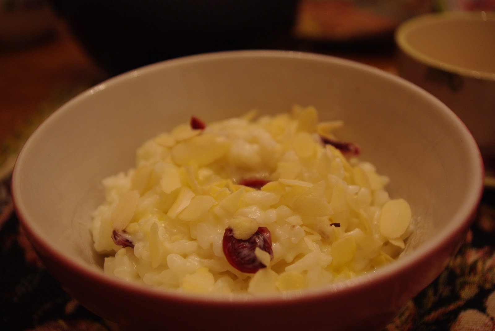 Taigi, sunkiausias gaminimo etapas, vos pramerkus akis ir išsiritus iš lovos pirmiausiai bėgu į virtuvę ir užkaičiu puode 2 stiklines vandens, kol jis užverda, yra laiko praplauti ryžius. Ryžius supilu į verdantį vandenį, įberiu druskos, uždengiu puodą ir palieku virti ant pačios mažiausios ugnies. Dabar galiu 15-20 min. ramiai praleisti vonioje, o kartais vėl susirangyti į šiltą lovą. Praėjus minėtam laiko tarpui, ryžiai turėtų būt sugėrę visą vandenį, dabar juos dar „pagirdau“ pienu, kai jis užverda, sudedu nuplautas džiovintas spanguoles, cukrų, vaniliną, gerai išmaišau, uždengiu puodą, išjungiu ugnį ir palieku košę brinkti, kokias 10 min. Galiausiai ryžiai bus sugėrę ir pieną. Košę dalinu į lėkštes ir apibarstau migdolų drožlėmis.