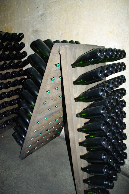 Šampanas buvo pradėtas brandinti kreidos kasyklų urvuose, kuriuose ištisus metus laikosi pastovi drėgmė ir oro temperatūra.